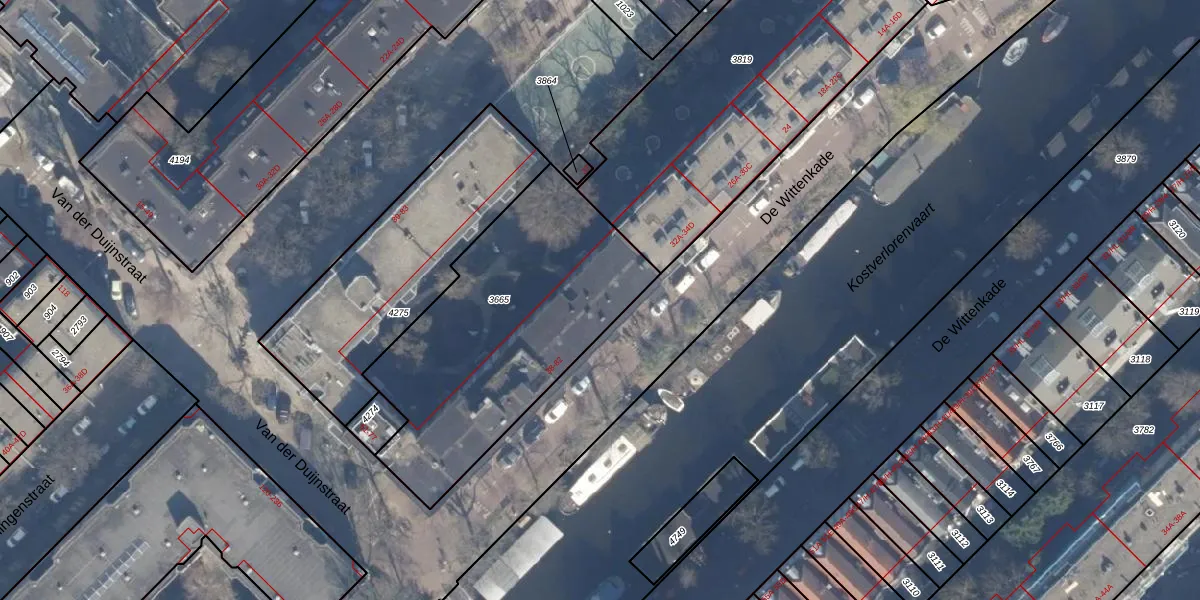 Het perceel waarop De Wittenkade 46 staat heeft een oppervlakte van 1292 m². Dit is een zeer groot perceel. De perceeloppervlakte wordt geregistreerd door het Kadaster. Gedetailleerde informatie over de maten van dit perceel kunt u vinden in het rapport Kadastrale kaart met maatvoering van De Wittenkade 46.