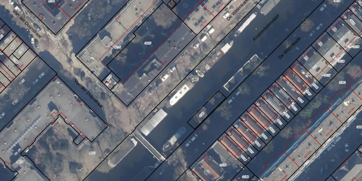Het perceel waarop De Wittenkade 46-W staat heeft een oppervlakte van 2,8 ha. Dit is een zeer groot perceel. De perceeloppervlakte wordt geregistreerd door het Kadaster. Gedetailleerde informatie over de maten van dit perceel kunt u vinden in het rapport Kadastrale kaart met maatvoering van De Wittenkade 46-W.