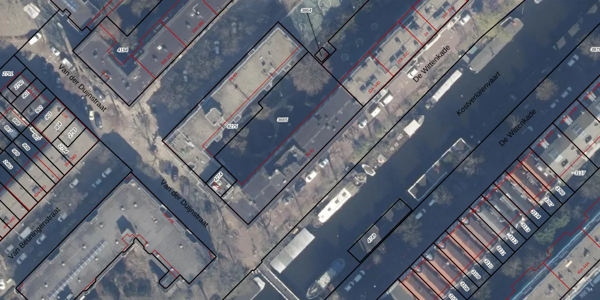 Het perceel waarop De Wittenkade 60 staat heeft een oppervlakte van 1292 m². Dit is een zeer groot perceel. De perceeloppervlakte wordt geregistreerd door het Kadaster. Gedetailleerde informatie over de maten van dit perceel kunt u vinden in het rapport Kadastrale kaart met maatvoering van De Wittenkade 60.