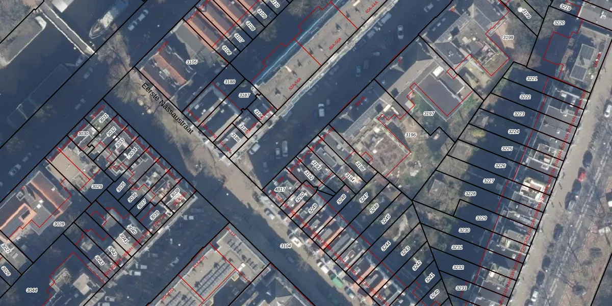 Het adres is gelegen op perceel 3193 in de sectie Y en de kadastrale gemeente Amsterdam. De kadastrale aanduiding is aldus ASD21-Y-3193. Het perceel is kleiner dan gemiddeld in Amsterdam. Het perceel is 89 m² groot, terwijl het gemiddelde ligt op 769,96 m². Het grootste perceel in de kadastrale gemeente is 7,1 ha. Het kleinste perceel heeft een oppervlakte van 0 m². Op het perceel zijn 4 adressen aanwezig. De huidige grenzen van het perceel zijn digitaal in de Basisregistratie Kadaster (BRK) geregistreerd op 29-01-2007.