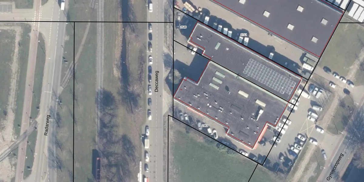 Het perceel waarop Deccaweg 6 staat heeft een oppervlakte van 2501 m². Dit is een zeer groot perceel. De perceeloppervlakte wordt geregistreerd door het Kadaster. Gedetailleerde informatie over de maten van dit perceel kunt u vinden in het rapport Kadastrale kaart met maatvoering van Deccaweg 6.