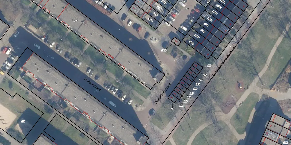 Het perceel waarop Dekschuitstraat 188 staat heeft een oppervlakte van 2283 m². Dit is een zeer groot perceel. De perceeloppervlakte wordt geregistreerd door het Kadaster. Gedetailleerde informatie over de maten van dit perceel kunt u vinden in het rapport Kadastrale kaart met maatvoering van Dekschuitstraat 188.