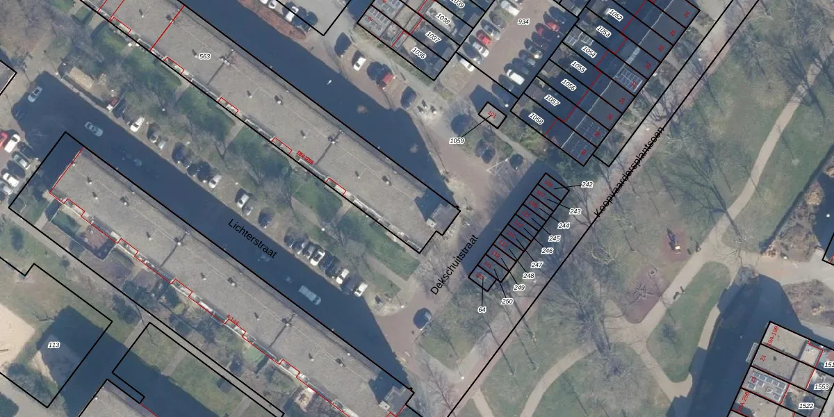 Het perceel waarop Dekschuitstraat 208 staat heeft een oppervlakte van 2283 m². Dit is een zeer groot perceel. De perceeloppervlakte wordt geregistreerd door het Kadaster. Gedetailleerde informatie over de maten van dit perceel kunt u vinden in het rapport Kadastrale kaart met maatvoering van Dekschuitstraat 208.