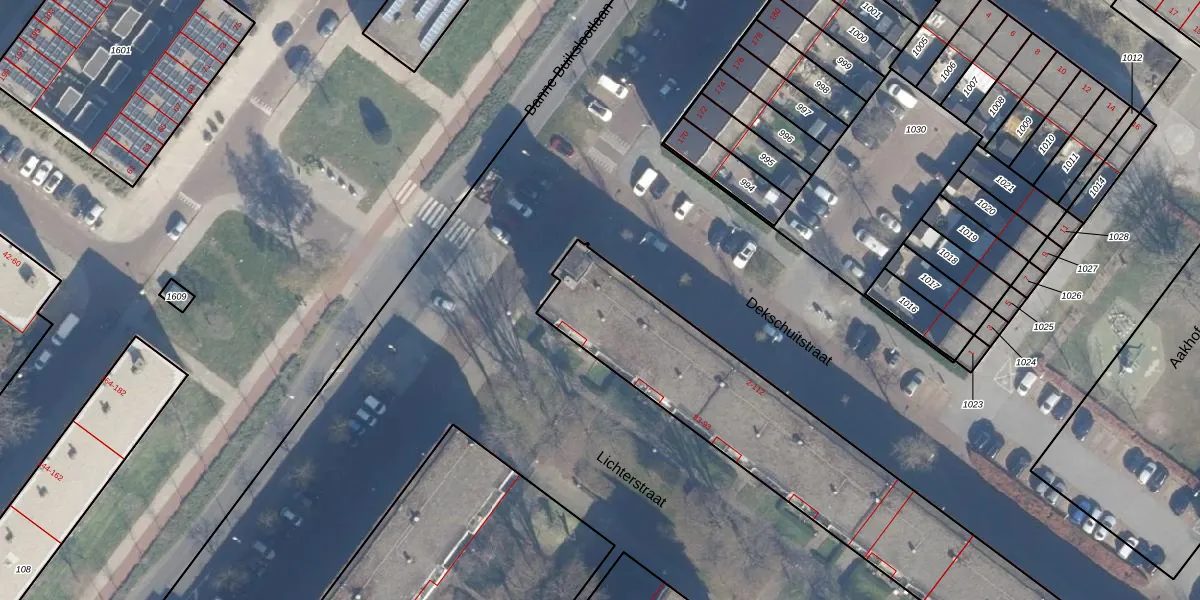 Het perceel waarop Dekschuitstraat 22 staat heeft een oppervlakte van 2283 m². Dit is een zeer groot perceel. De perceeloppervlakte wordt geregistreerd door het Kadaster. Gedetailleerde informatie over de maten van dit perceel kunt u vinden in het rapport Kadastrale kaart met maatvoering van Dekschuitstraat 22.