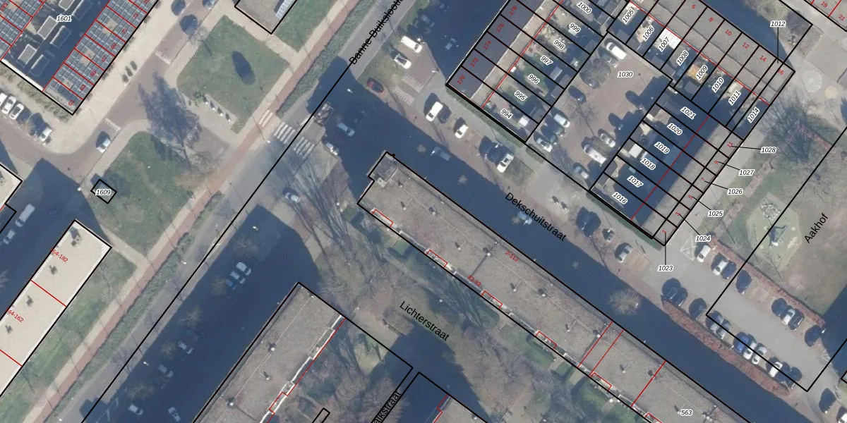 Het perceel waarop Dekschuitstraat 64 staat heeft een oppervlakte van 2283 m². Dit is een zeer groot perceel. De perceeloppervlakte wordt geregistreerd door het Kadaster. Gedetailleerde informatie over de maten van dit perceel kunt u vinden in het rapport Kadastrale kaart met maatvoering van Dekschuitstraat 64.