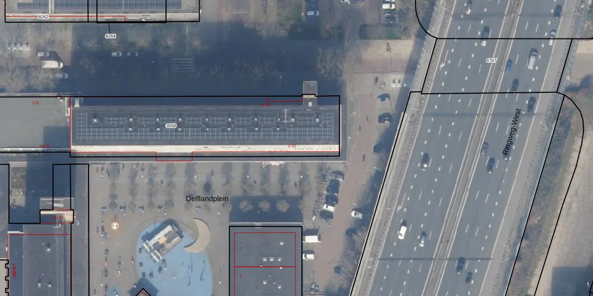 Het perceel waarop Delflandplein 4 staat heeft een oppervlakte van 2298 m². Dit is een zeer groot perceel. De perceeloppervlakte wordt geregistreerd door het Kadaster. Gedetailleerde informatie over de maten van dit perceel kunt u vinden in het rapport Kadastrale kaart met maatvoering van Delflandplein 4.