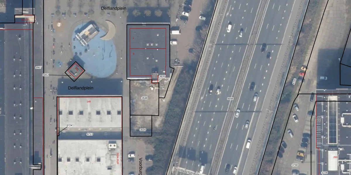 Het perceel waarop Delflandplein 47 staat heeft een oppervlakte van 14,3 ha. Dit is een zeer groot perceel. De perceeloppervlakte wordt geregistreerd door het Kadaster. Gedetailleerde informatie over de maten van dit perceel kunt u vinden in het rapport Kadastrale kaart met maatvoering van Delflandplein 47.