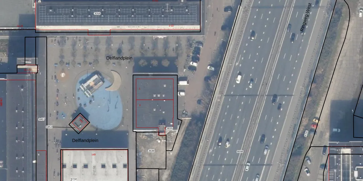 Het perceel waarop Delflandplein 93 staat heeft een oppervlakte van 14,3 ha. Dit is een zeer groot perceel. De perceeloppervlakte wordt geregistreerd door het Kadaster. Gedetailleerde informatie over de maten van dit perceel kunt u vinden in het rapport Kadastrale kaart met maatvoering van Delflandplein 93.