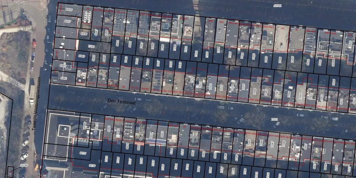 Den Texstraat 15-H is gelegen op kadastraal perceel ASD06I7019. Deze kadastrale aanduiding is uniek en wordt gebruikt door het Kadaster om eigendomsrechten en andere zakelijke rechten vast te leggen. Het perceel maakt onderdeel uit van de kadastrale gemeente Amsterdam.