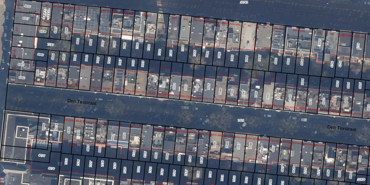 Het perceel waarop Den Texstraat 23-H staat heeft een oppervlakte van 122 m². Dit is een middelgroot perceel. De perceeloppervlakte wordt geregistreerd door het Kadaster. Gedetailleerde informatie over de maten van dit perceel kunt u vinden in het rapport Kadastrale kaart met maatvoering van Den Texstraat 23-H.