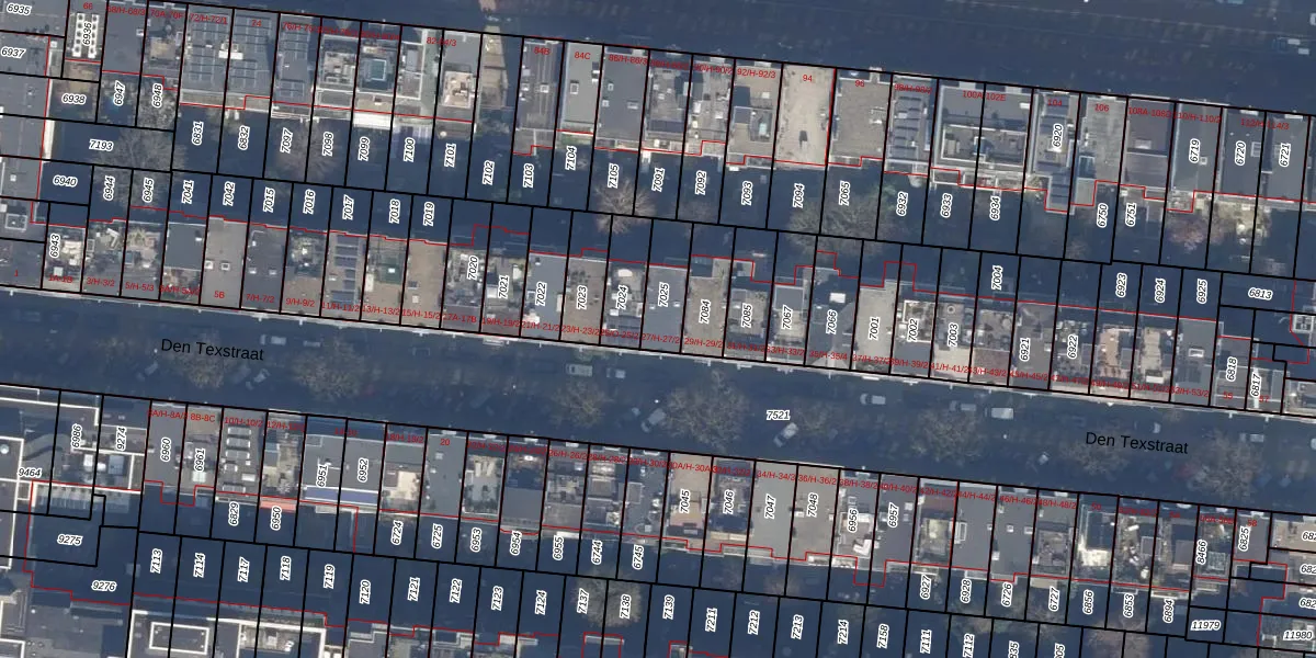 Het perceel waarop Den Texstraat 27-H staat heeft een oppervlakte van 123 m². Dit is een middelgroot perceel. De perceeloppervlakte wordt geregistreerd door het Kadaster. Gedetailleerde informatie over de maten van dit perceel kunt u vinden in het rapport Kadastrale kaart met maatvoering van Den Texstraat 27-H.