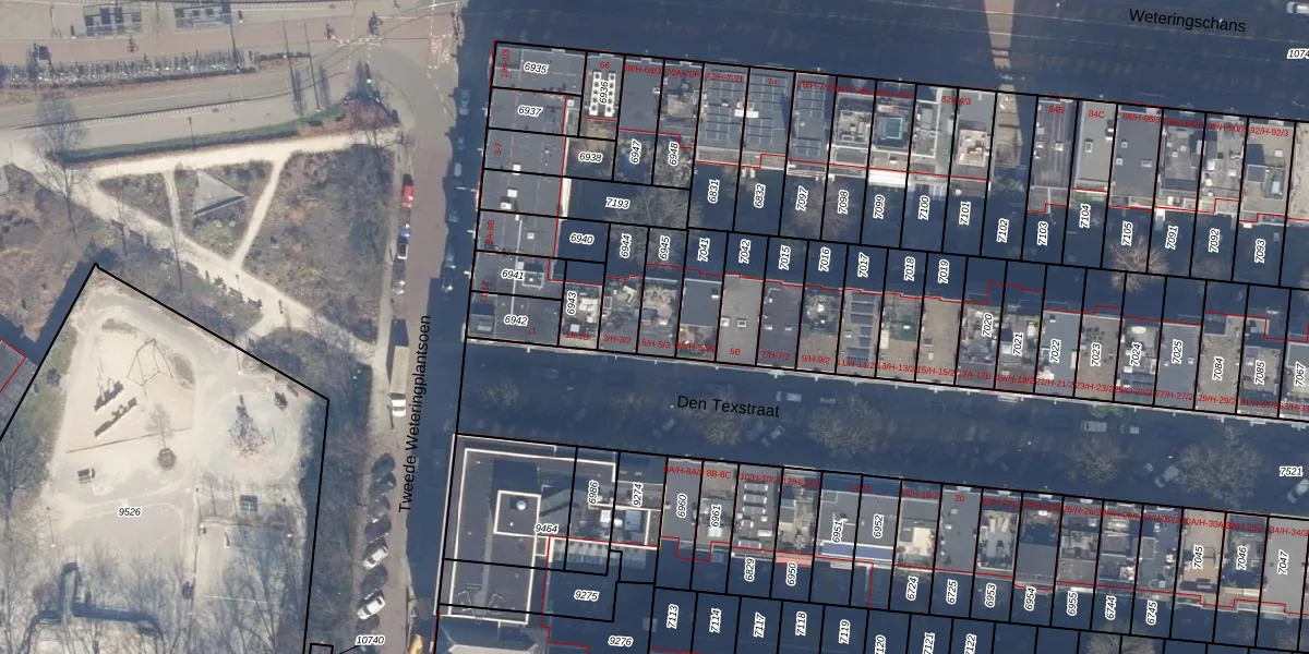 Het perceel waarop Den Texstraat 5-2 staat heeft een oppervlakte van 116 m². Dit is een middelgroot perceel. De perceeloppervlakte wordt geregistreerd door het Kadaster. Gedetailleerde informatie over de maten van dit perceel kunt u vinden in het rapport Kadastrale kaart met maatvoering van Den Texstraat 5-2.