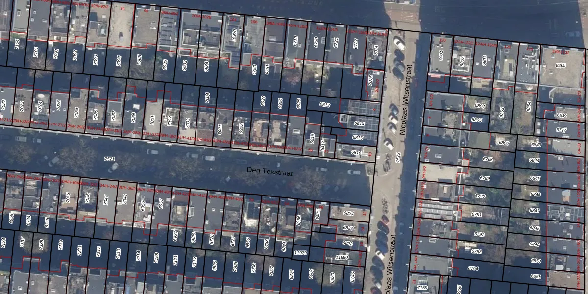 Den Texstraat 53-2 is gelegen op kadastraal perceel ASD06I6925. Deze kadastrale aanduiding is uniek en wordt gebruikt door het Kadaster om eigendomsrechten en andere zakelijke rechten vast te leggen. Het perceel maakt onderdeel uit van de kadastrale gemeente Amsterdam.