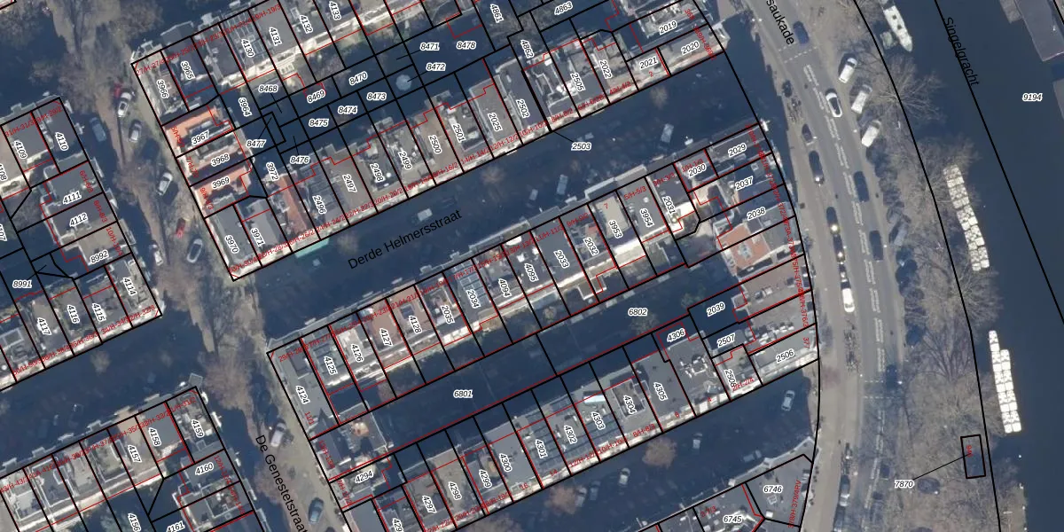 Het perceel waarop het adres ligt is ASD13-Q-4095. De afkorting 'ASD13' staat voor kadastrale gemeente Amsterdam. De gemiddelde perceelgrootte in Amsterdam is 394,07 m². Dit perceel is kleiner: de perceeloppervlakte bedraagt 108 m². Het kleinste perceel in de kadastrale gemeente is 1 m² groot. De grootste perceeloppervlakte is 6,2 ha. Op het perceel liggen in totaal 3 adressen. De huidige grenzen van het perceel zijn digitaal in de Basisregistratie Kadaster (BRK) geregistreerd op 14-08-2006.