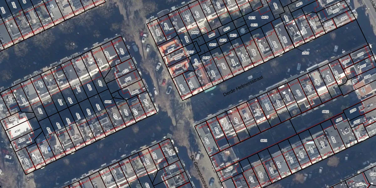 Het adres is gelegen op perceel 3970 in de sectie Q en de kadastrale gemeente Amsterdam. De kadastrale aanduiding is aldus ASD13-Q-3970. Het perceel is 78 m² groot. Dat is kleiner dan de gemiddelde perceeloppervlakte in Amsterdam, dat op 393,94 m² ligt. De grootste perceeloppervlakte in de kadastrale gemeente is 6,2 ha. De kleinste oppervlakte bedraagt 1 m². Op het perceel zijn 6 adressen aanwezig. In de Basisregistratie Kadaster (BRK) werden de grenzen van het perceel geregistreerd op 03-11-2006.