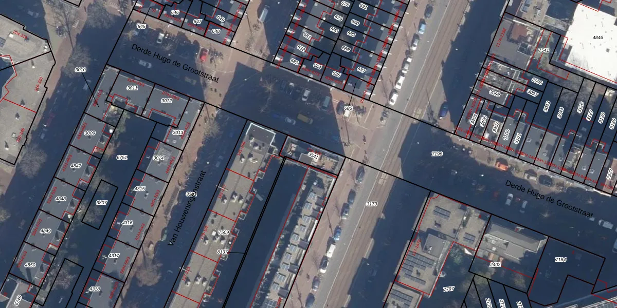 Derde Hugo de Grootstraat 17-E is gelegen op kadastraal perceel ASD13Q3541. Deze kadastrale aanduiding is uniek en wordt gebruikt door het Kadaster om eigendomsrechten en andere zakelijke rechten vast te leggen. Het perceel maakt onderdeel uit van de kadastrale gemeente Amsterdam.