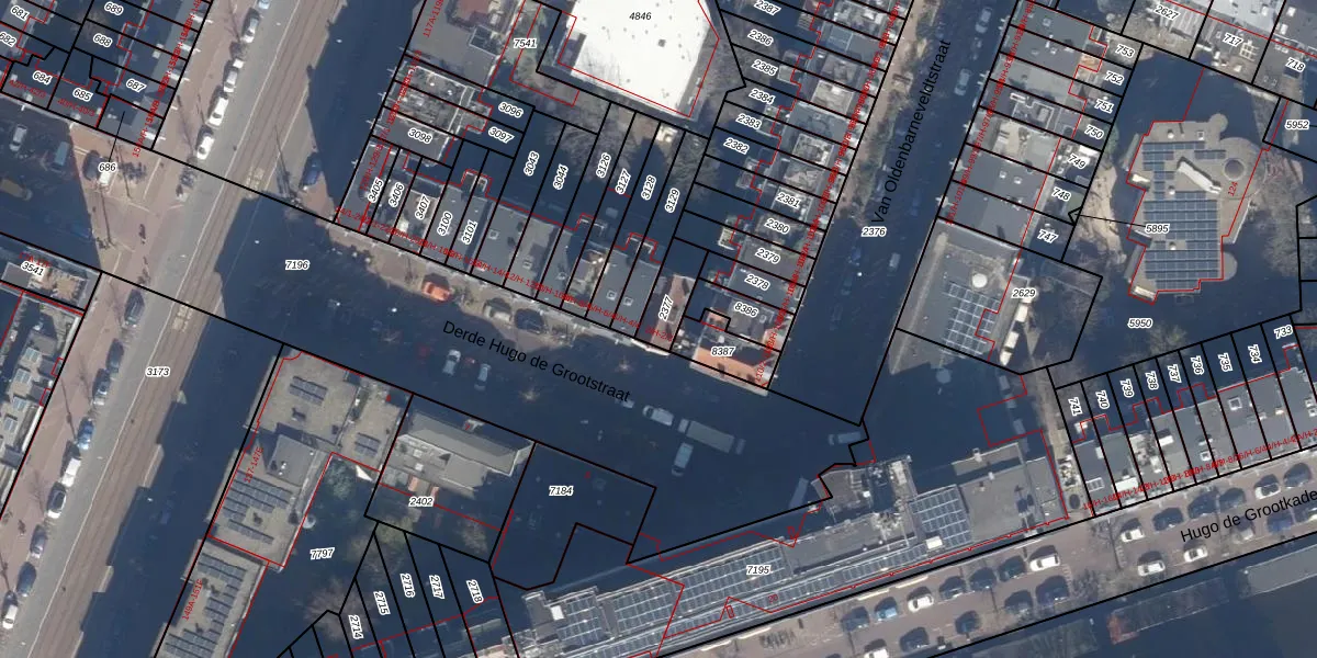 Het perceel waarop Derde Hugo de Grootstraat 2-H staat heeft een oppervlakte van 91 m². Dit is een klein perceel. De perceeloppervlakte wordt geregistreerd door het Kadaster. Gedetailleerde informatie over de maten van dit perceel kunt u vinden in het rapport Kadastrale kaart met maatvoering van Derde Hugo de Grootstraat 2-H.