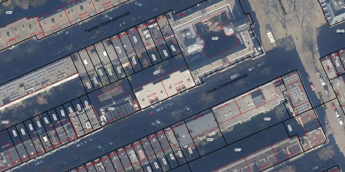 Derde Oosterparkstraat 189 is gelegen op kadastraal perceel ASD15S8564. Deze kadastrale aanduiding is uniek en wordt gebruikt door het Kadaster om eigendomsrechten en andere zakelijke rechten vast te leggen. Het perceel maakt onderdeel uit van de kadastrale gemeente Amsterdam.