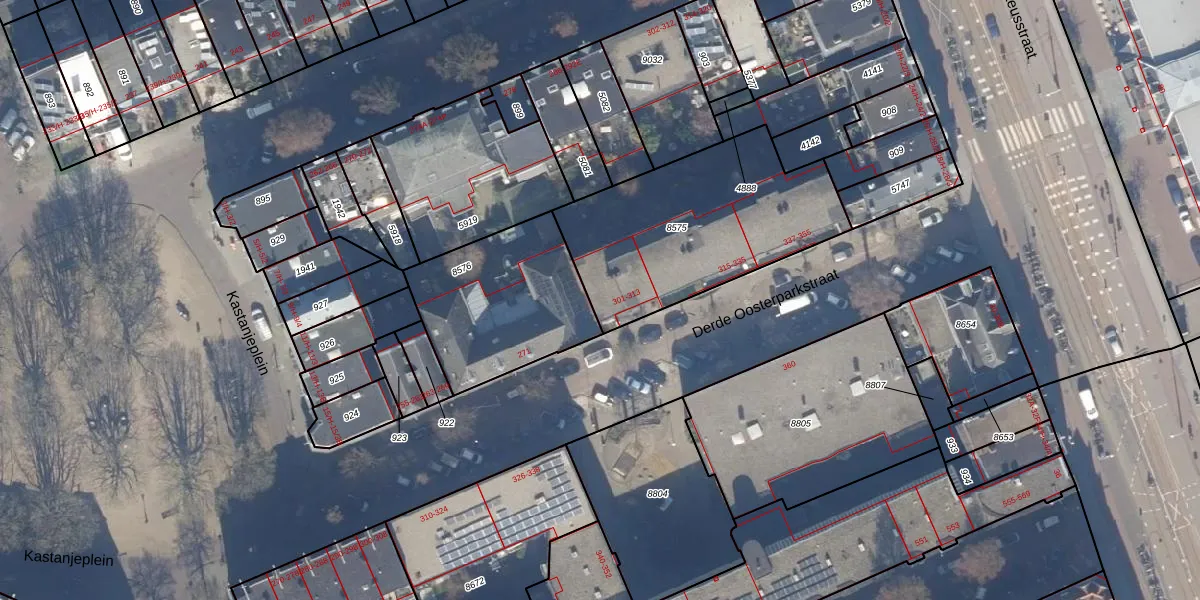 Het perceel waarop Derde Oosterparkstraat 301 staat heeft een oppervlakte van 973 m². Dit is een groot perceel. De perceeloppervlakte wordt geregistreerd door het Kadaster. Gedetailleerde informatie over de maten van dit perceel kunt u vinden in het rapport Kadastrale kaart met maatvoering van Derde Oosterparkstraat 301.
