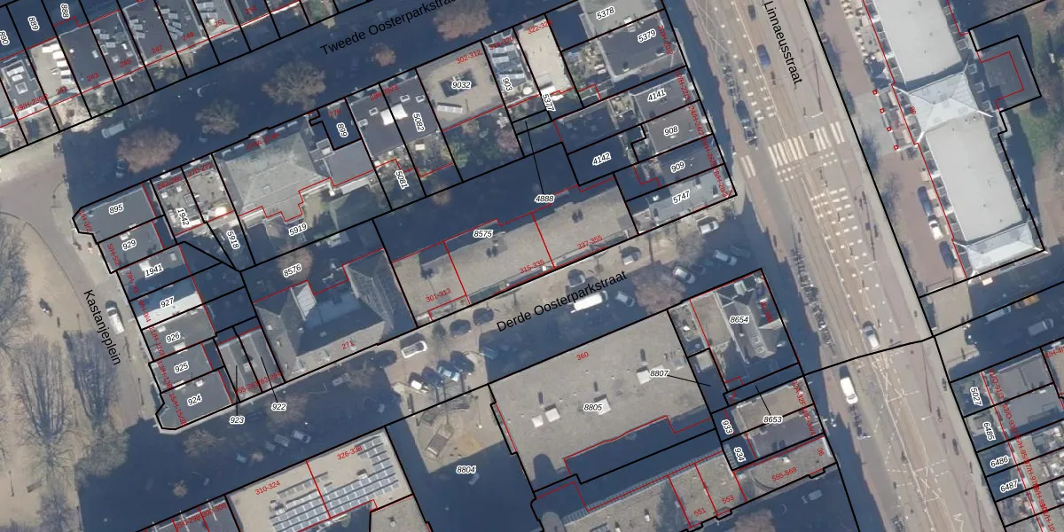 Het perceel waarop Derde Oosterparkstraat 317 staat heeft een oppervlakte van 973 m². Dit is een groot perceel. De perceeloppervlakte wordt geregistreerd door het Kadaster. Gedetailleerde informatie over de maten van dit perceel kunt u vinden in het rapport Kadastrale kaart met maatvoering van Derde Oosterparkstraat 317.