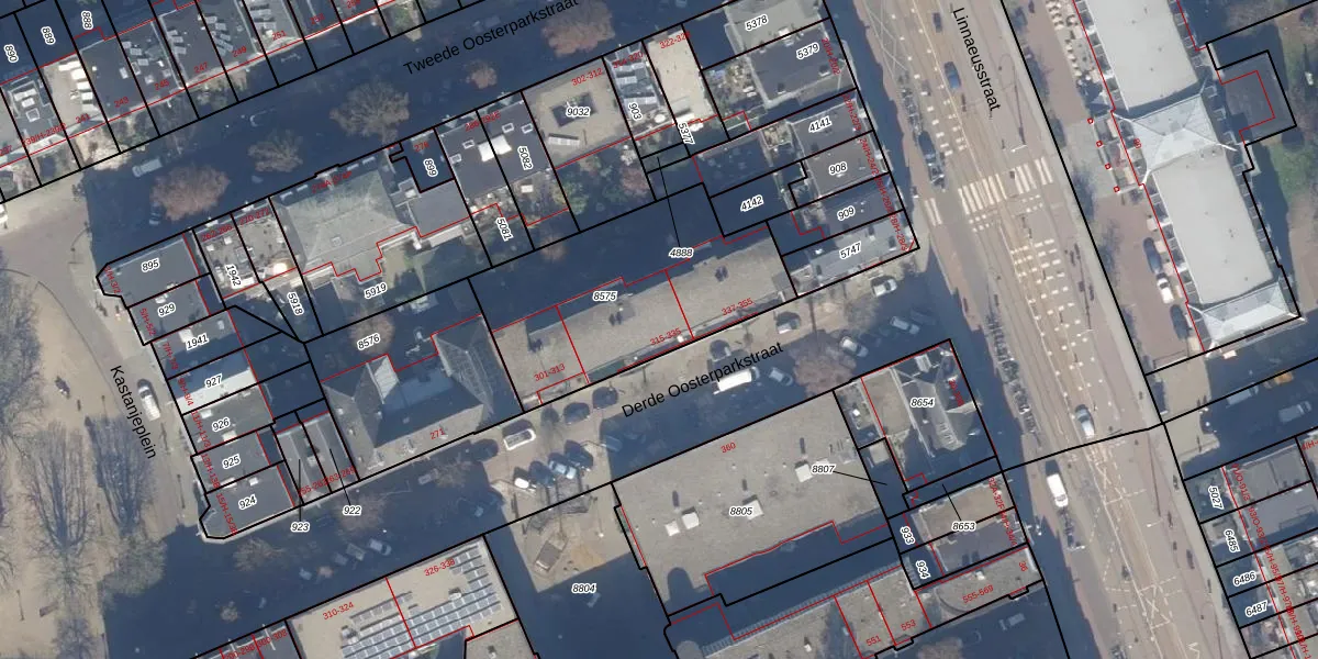 Het perceel waarop Derde Oosterparkstraat 323 staat heeft een oppervlakte van 973 m². Dit is een groot perceel. De perceeloppervlakte wordt geregistreerd door het Kadaster. Gedetailleerde informatie over de maten van dit perceel kunt u vinden in het rapport Kadastrale kaart met maatvoering van Derde Oosterparkstraat 323.