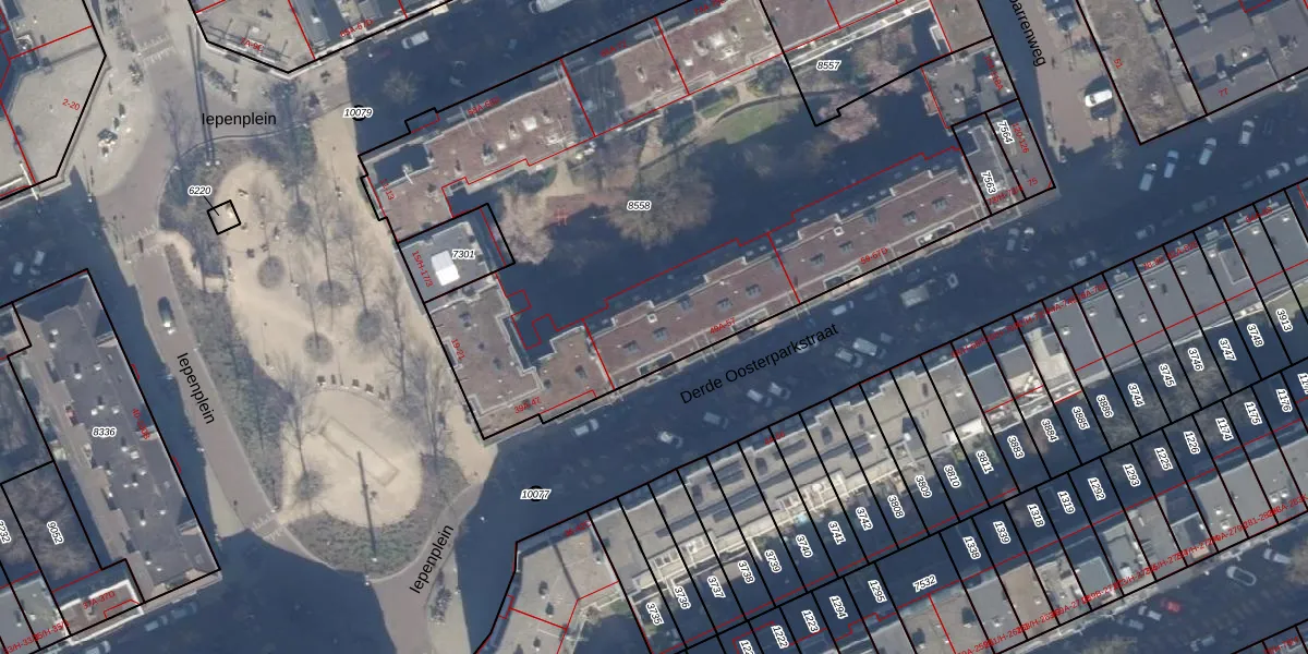 Het perceel waarop Derde Oosterparkstraat 51-D staat heeft een oppervlakte van 3650 m². Dit is een zeer groot perceel. De perceeloppervlakte wordt geregistreerd door het Kadaster. Gedetailleerde informatie over de maten van dit perceel kunt u vinden in het rapport Kadastrale kaart met maatvoering van Derde Oosterparkstraat 51-D.