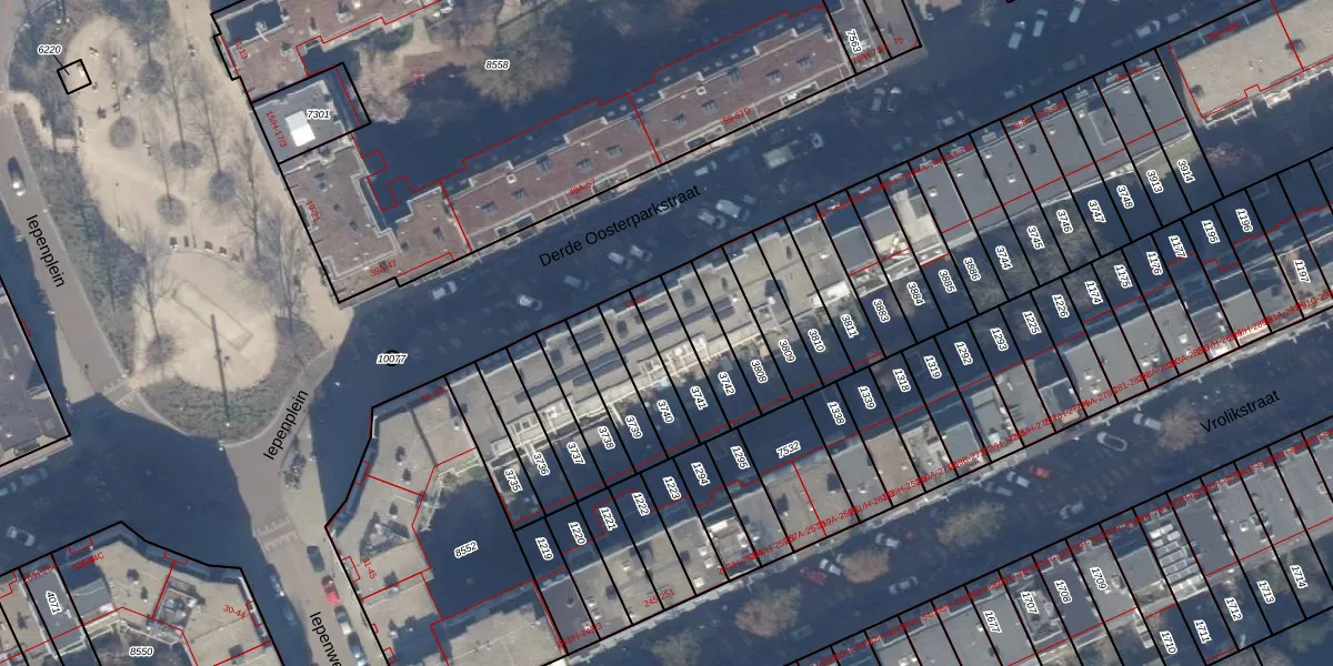 Derde Oosterparkstraat 64-F is gelegen op kadastraal perceel ASD15S3741. Deze kadastrale aanduiding is uniek en wordt gebruikt door het Kadaster om eigendomsrechten en andere zakelijke rechten vast te leggen. Het perceel maakt onderdeel uit van de kadastrale gemeente Amsterdam.