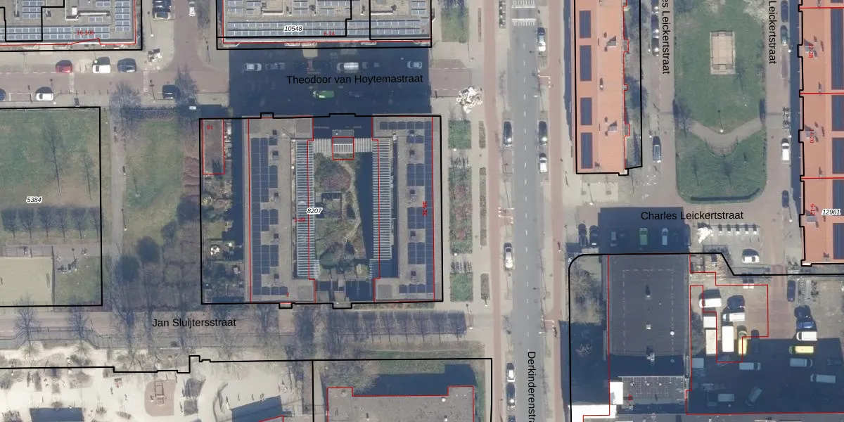 Het perceel waarop Derkinderenstraat 5-B staat heeft een oppervlakte van 2532 m². Dit is een zeer groot perceel. De perceeloppervlakte wordt geregistreerd door het Kadaster. Gedetailleerde informatie over de maten van dit perceel kunt u vinden in het rapport Kadastrale kaart met maatvoering van Derkinderenstraat 5-B.