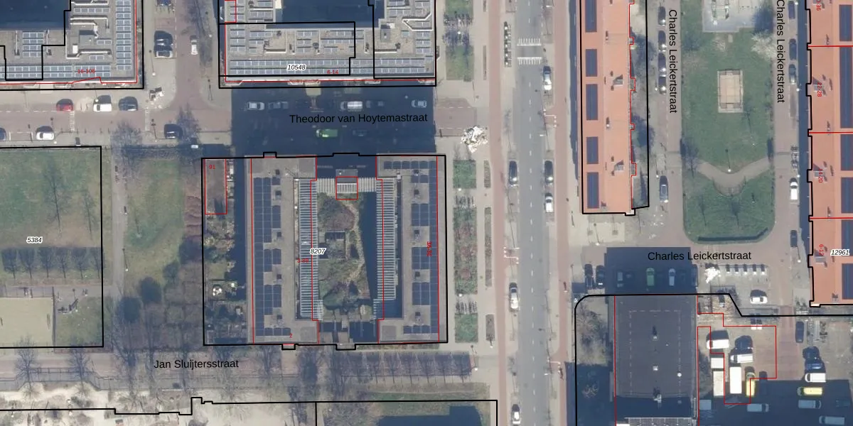 Het perceel waarop Derkinderenstraat 7-A staat heeft een oppervlakte van 2532 m². Dit is een zeer groot perceel. De perceeloppervlakte wordt geregistreerd door het Kadaster. Gedetailleerde informatie over de maten van dit perceel kunt u vinden in het rapport Kadastrale kaart met maatvoering van Derkinderenstraat 7-A.