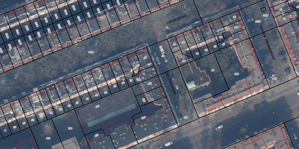 Het adres ligt op het perceel ASD24-AC-26, dat zich in de kadastrale gemeente Amsterdam bevindt. Het perceel is kleiner dan gemiddeld in Amsterdam. Het perceel is 107 m² groot, terwijl het gemiddelde ligt op 1365,99 m². De grootste perceeloppervlakte in de kadastrale gemeente is 11,7 ha. De kleinste oppervlakte bedraagt 1 m². Op het perceel zijn 3 adressen aanwezig. De huidige grenzen van het perceel zijn digitaal in de Basisregistratie Kadaster (BRK) geregistreerd op 28-09-2006.