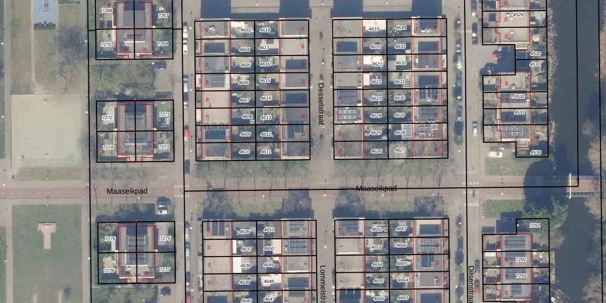 Gebruik de zoekbalk of klik op een perceel voor informatie over de adressen binnen dit perceel.