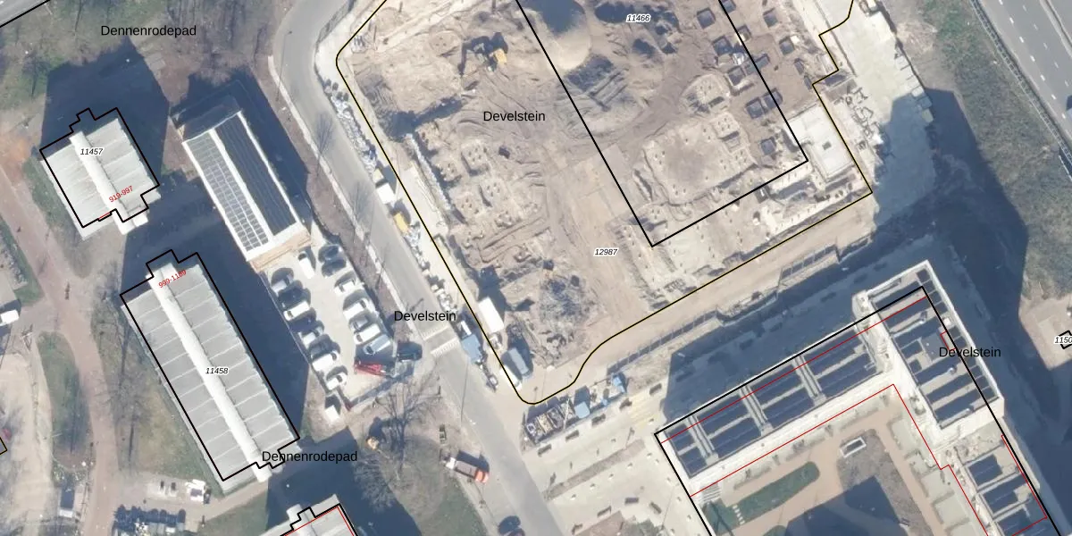 Het perceel waarop Develstein 12-C staat heeft een oppervlakte van 5873 m². Dit is een zeer groot perceel. De perceeloppervlakte wordt geregistreerd door het Kadaster. Gedetailleerde informatie over de maten van dit perceel kunt u vinden in het rapport Kadastrale kaart met maatvoering van Develstein 12-C.