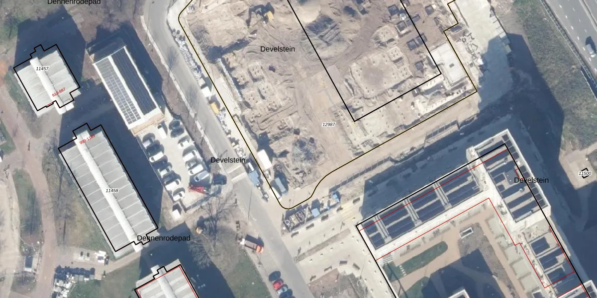 Het perceel waarop Develstein 12-E staat heeft een oppervlakte van 5873 m². Dit is een zeer groot perceel. De perceeloppervlakte wordt geregistreerd door het Kadaster. Gedetailleerde informatie over de maten van dit perceel kunt u vinden in het rapport Kadastrale kaart met maatvoering van Develstein 12-E.