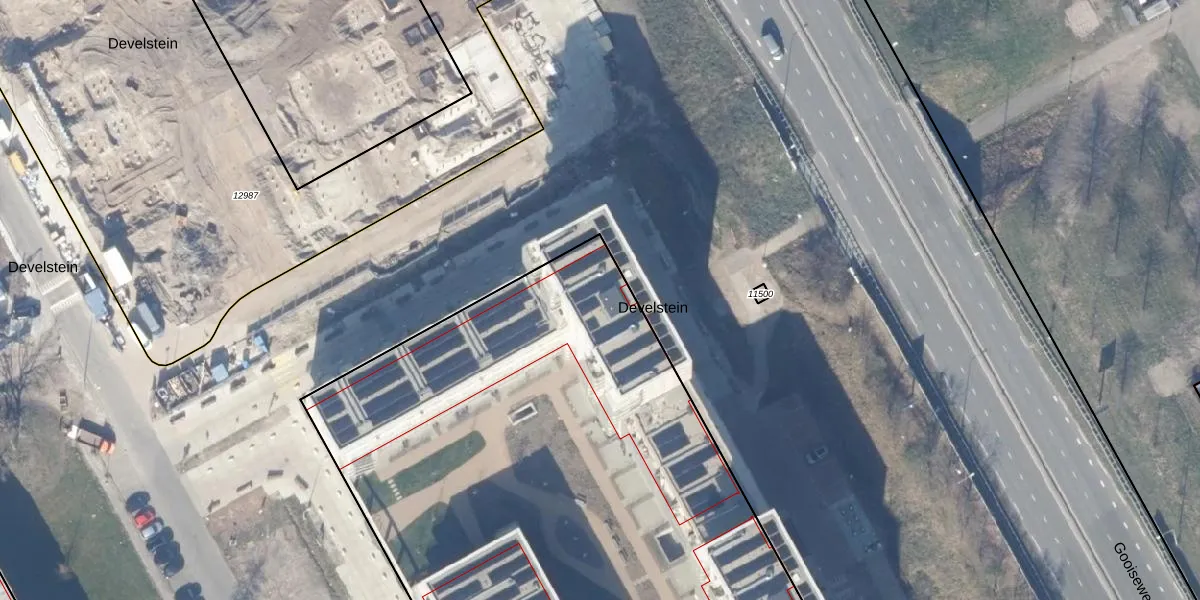 Het perceel waarop Develstein 124 staat heeft een oppervlakte van 8100 m². Dit is een zeer groot perceel. De perceeloppervlakte wordt geregistreerd door het Kadaster. Gedetailleerde informatie over de maten van dit perceel kunt u vinden in het rapport Kadastrale kaart met maatvoering van Develstein 124.