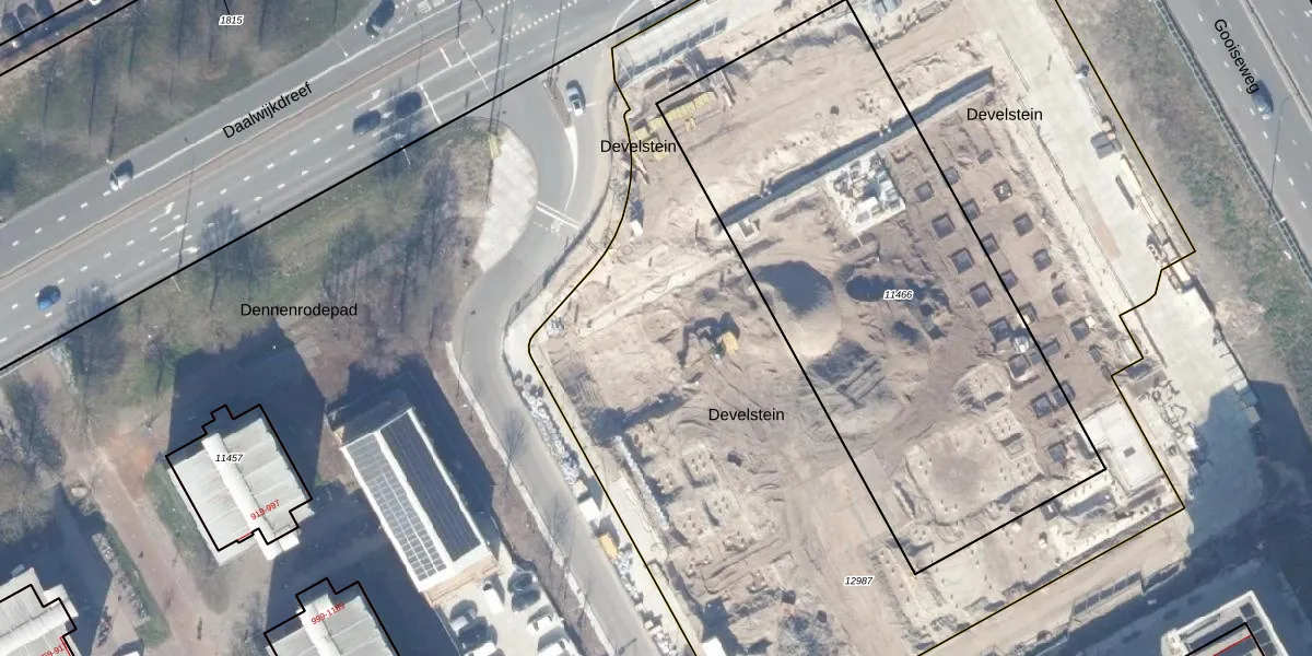 Het perceel waarop Develstein 16-E staat heeft een oppervlakte van 5873 m². Dit is een zeer groot perceel. De perceeloppervlakte wordt geregistreerd door het Kadaster. Gedetailleerde informatie over de maten van dit perceel kunt u vinden in het rapport Kadastrale kaart met maatvoering van Develstein 16-E.