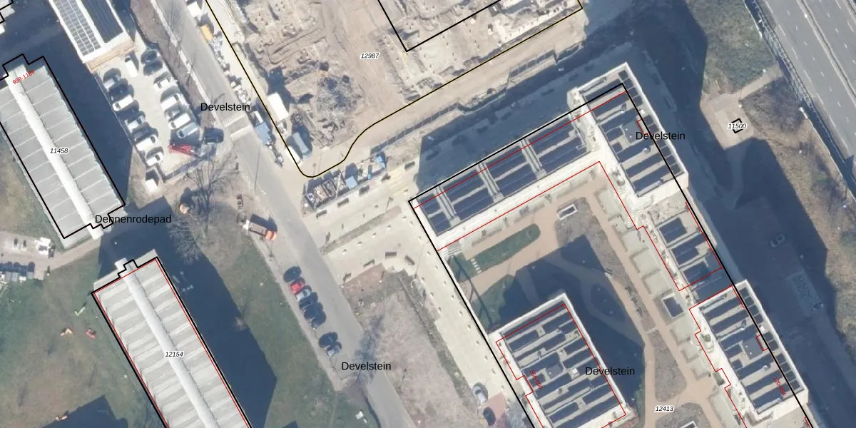 Het perceel waarop Develstein 162 staat heeft een oppervlakte van 8100 m². Dit is een zeer groot perceel. De perceeloppervlakte wordt geregistreerd door het Kadaster. Gedetailleerde informatie over de maten van dit perceel kunt u vinden in het rapport Kadastrale kaart met maatvoering van Develstein 162.