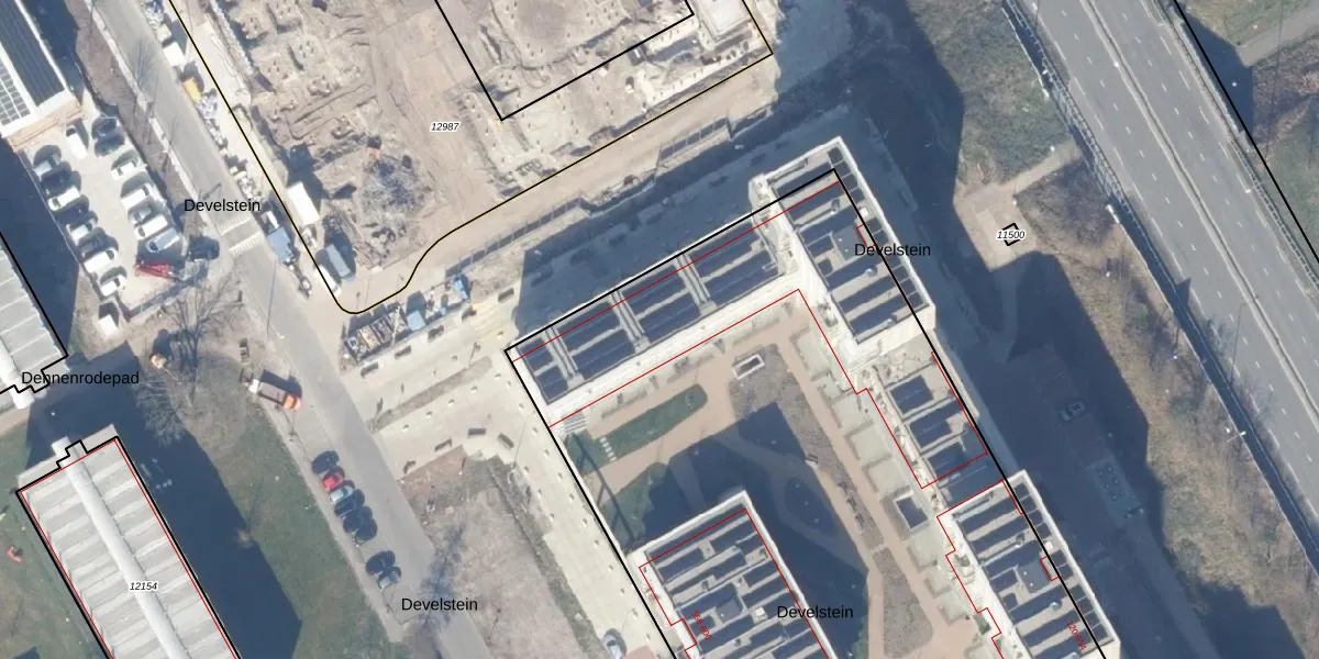 Het perceel waarop Develstein 178 staat heeft een oppervlakte van 8100 m². Dit is een zeer groot perceel. De perceeloppervlakte wordt geregistreerd door het Kadaster. Gedetailleerde informatie over de maten van dit perceel kunt u vinden in het rapport Kadastrale kaart met maatvoering van Develstein 178.