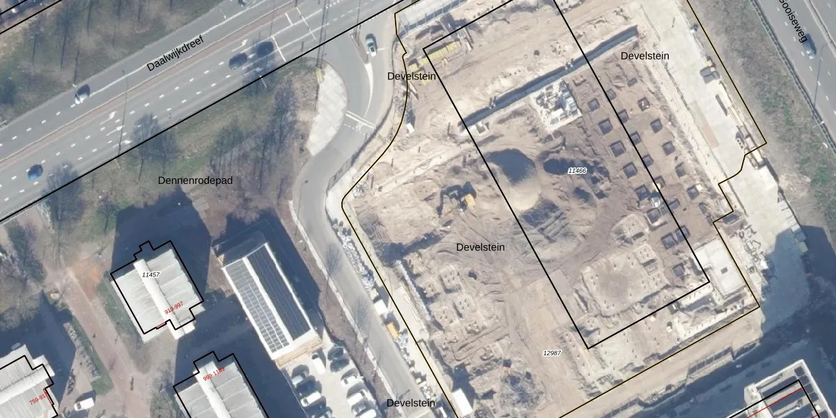 Het perceel waarop Develstein 18-F staat heeft een oppervlakte van 5873 m². Dit is een zeer groot perceel. De perceeloppervlakte wordt geregistreerd door het Kadaster. Gedetailleerde informatie over de maten van dit perceel kunt u vinden in het rapport Kadastrale kaart met maatvoering van Develstein 18-F.