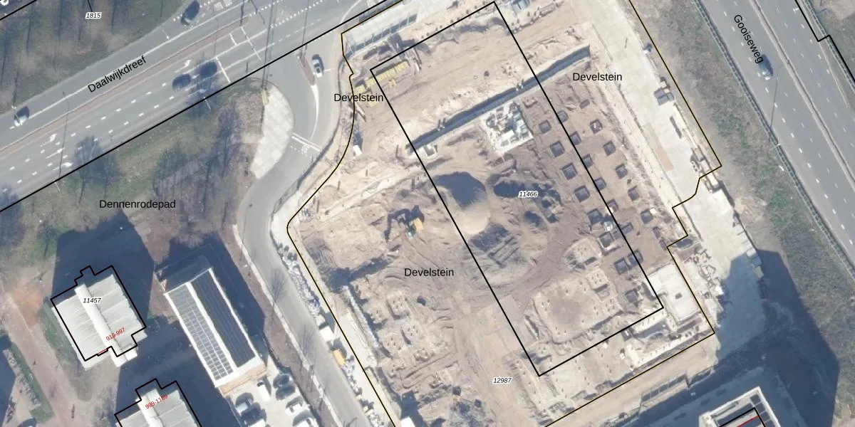 Het perceel waarop Develstein 20-A staat heeft een oppervlakte van 5873 m². Dit is een zeer groot perceel. De perceeloppervlakte wordt geregistreerd door het Kadaster. Gedetailleerde informatie over de maten van dit perceel kunt u vinden in het rapport Kadastrale kaart met maatvoering van Develstein 20-A.