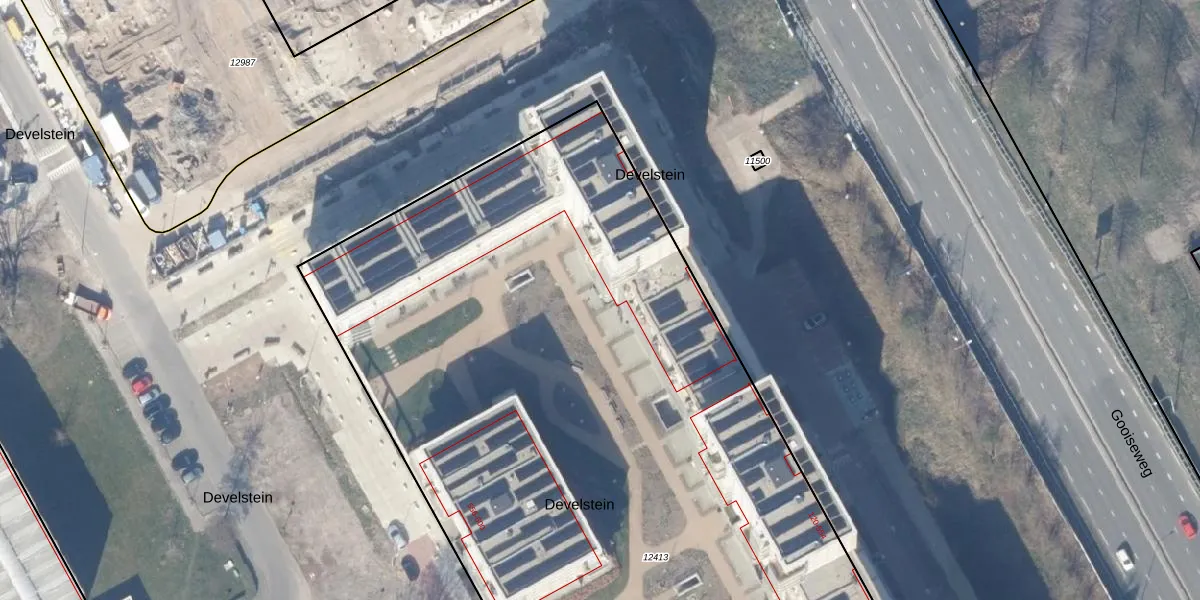 Het perceel waarop Develstein 236 staat heeft een oppervlakte van 8100 m². Dit is een zeer groot perceel. De perceeloppervlakte wordt geregistreerd door het Kadaster. Gedetailleerde informatie over de maten van dit perceel kunt u vinden in het rapport Kadastrale kaart met maatvoering van Develstein 236.