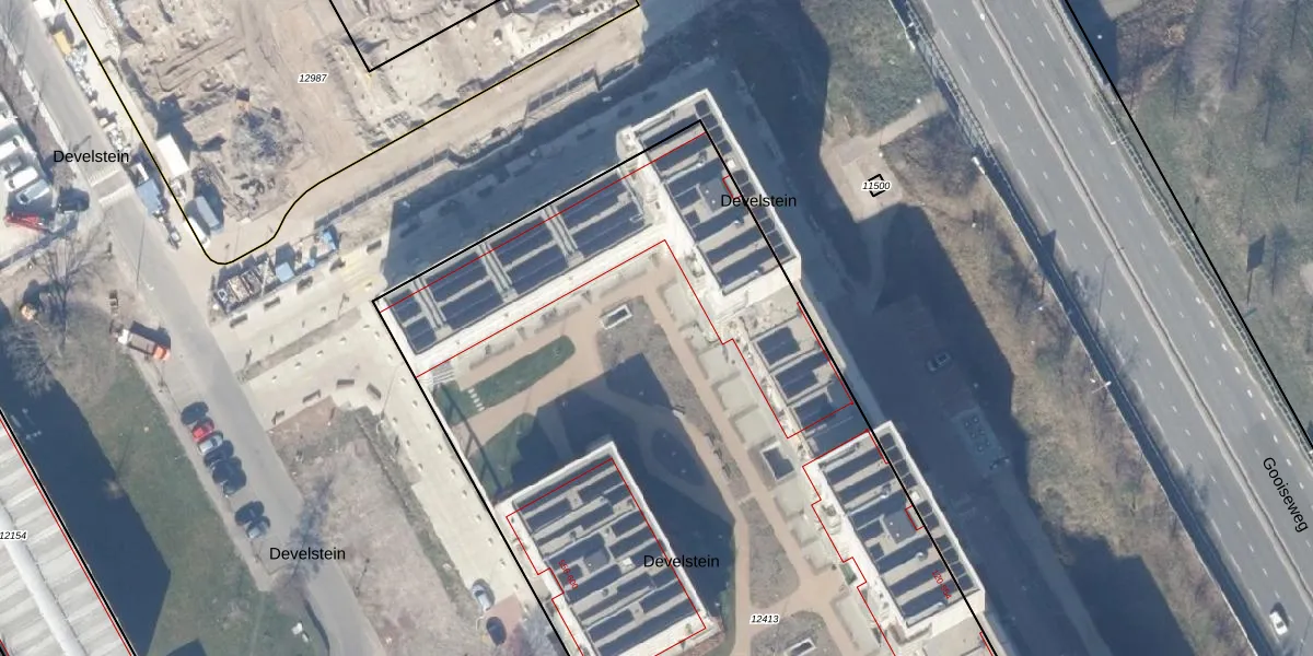 Het perceel waarop het adres ligt is WPK02-L-12413. De afkorting 'WPK02' staat voor kadastrale gemeente Weesperkarspel. De gemiddelde perceeloppervlakte in de kadastrale gemeente Weesperkarspel is 1745,08 m². Dit perceel is met zijn 8100 m² dus groter dan gemiddeld. De grootste perceeloppervlakte in de kadastrale gemeente is 1,04 km². De kleinste oppervlakte bedraagt 0 m². Er zijn 264 adressen aanwezig op het perceel. De laatste wijziging in het de Basisregistratie Kadaster (BRK) was op 21-12-2023.