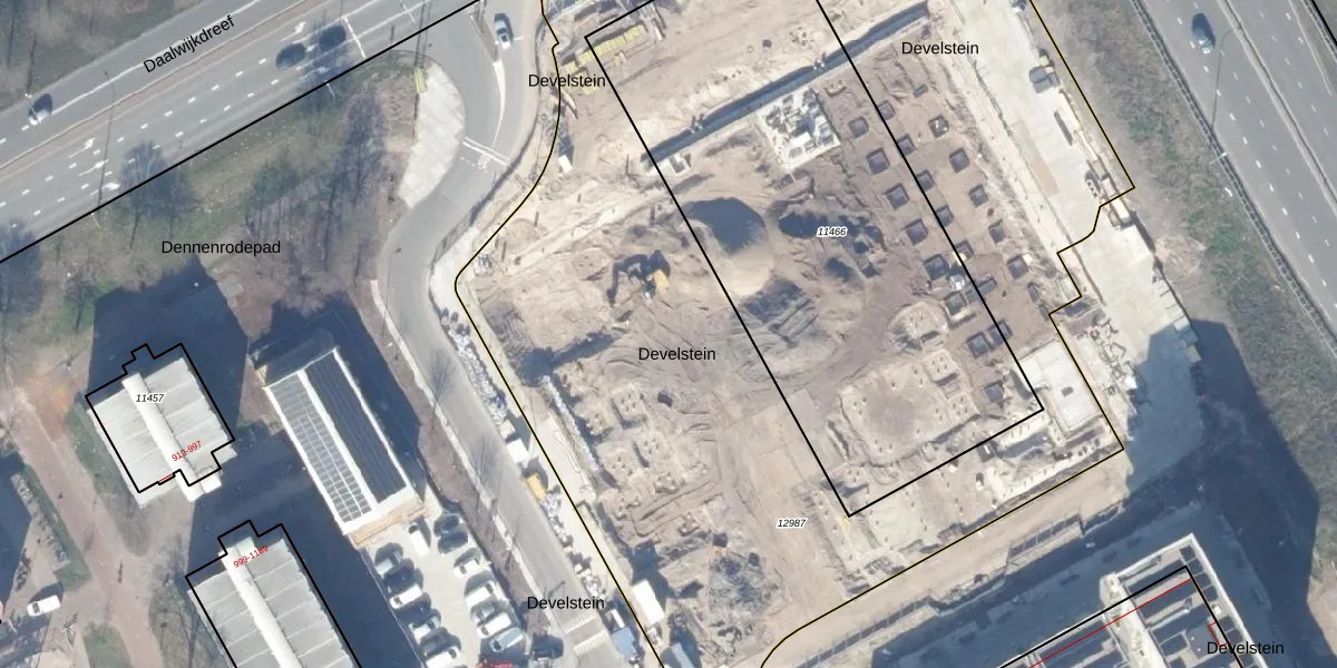 Het perceel waarop Develstein 26-C staat heeft een oppervlakte van 5873 m². Dit is een zeer groot perceel. De perceeloppervlakte wordt geregistreerd door het Kadaster. Gedetailleerde informatie over de maten van dit perceel kunt u vinden in het rapport Kadastrale kaart met maatvoering van Develstein 26-C.