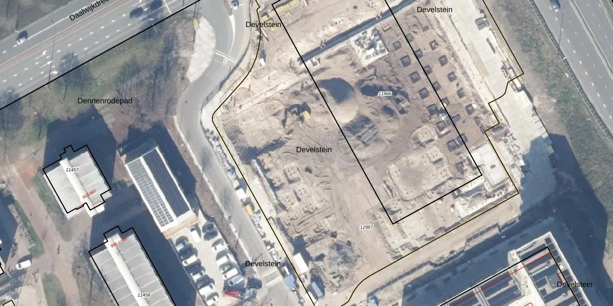 Het perceel waarop Develstein 28-D staat heeft een oppervlakte van 5873 m². Dit is een zeer groot perceel. De perceeloppervlakte wordt geregistreerd door het Kadaster. Gedetailleerde informatie over de maten van dit perceel kunt u vinden in het rapport Kadastrale kaart met maatvoering van Develstein 28-D.
