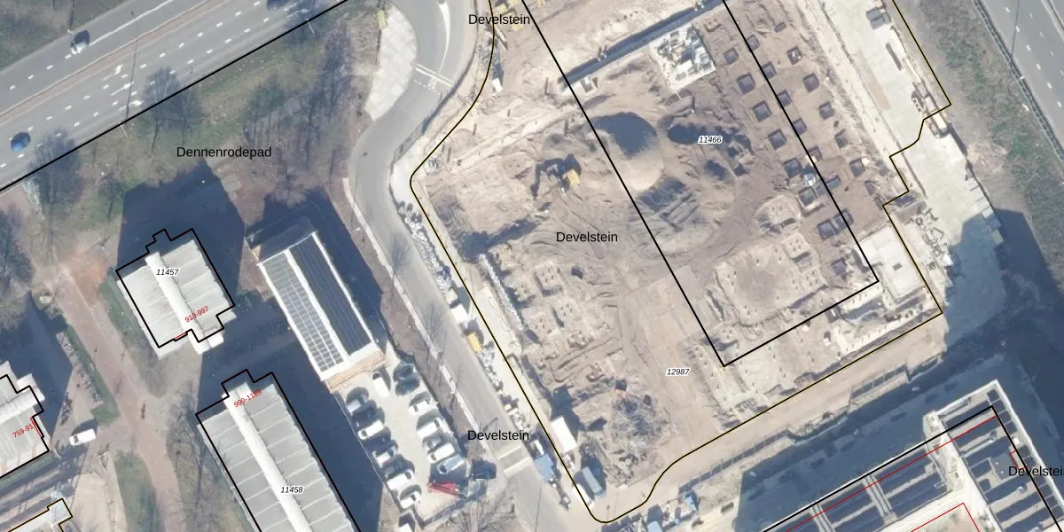Het perceel waarop Develstein 28-G staat heeft een oppervlakte van 5873 m². Dit is een zeer groot perceel. De perceeloppervlakte wordt geregistreerd door het Kadaster. Gedetailleerde informatie over de maten van dit perceel kunt u vinden in het rapport Kadastrale kaart met maatvoering van Develstein 28-G.