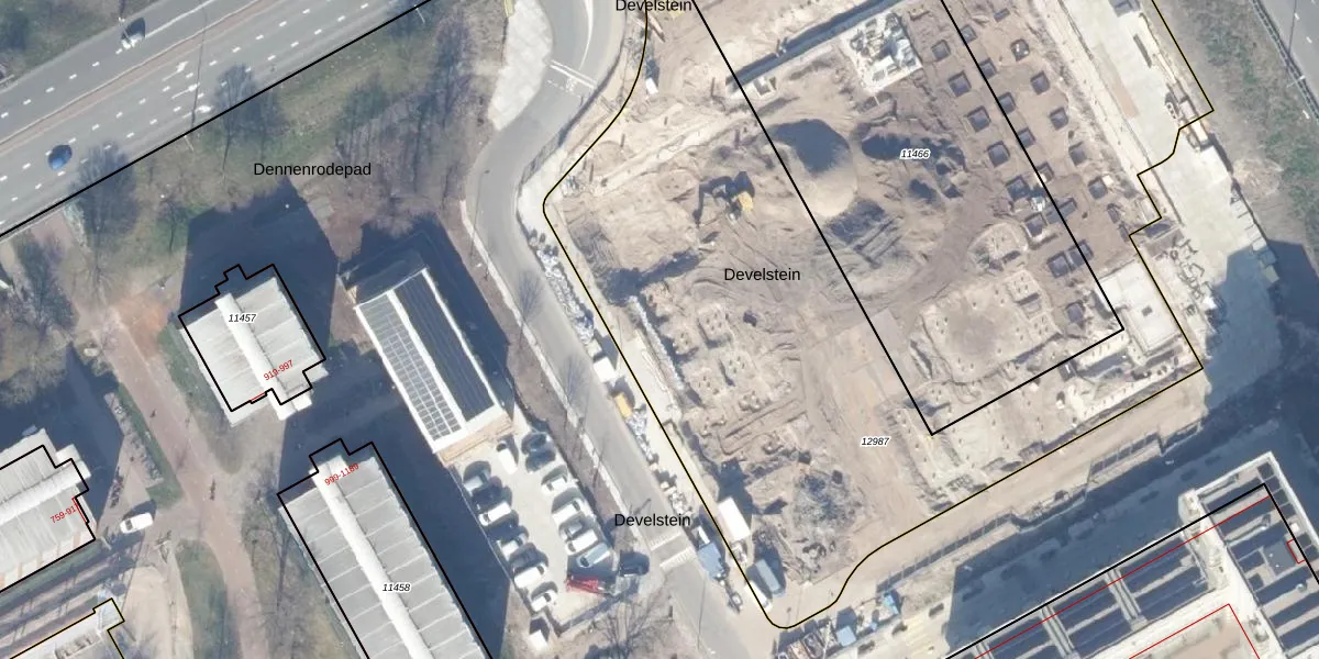 Het perceel waarop Develstein 28-K staat heeft een oppervlakte van 5873 m². Dit is een zeer groot perceel. De perceeloppervlakte wordt geregistreerd door het Kadaster. Gedetailleerde informatie over de maten van dit perceel kunt u vinden in het rapport Kadastrale kaart met maatvoering van Develstein 28-K.
