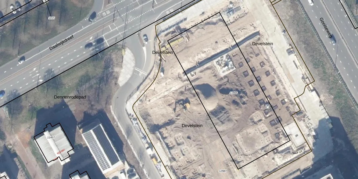 Het perceel waarop Develstein 30-B staat heeft een oppervlakte van 5873 m². Dit is een zeer groot perceel. De perceeloppervlakte wordt geregistreerd door het Kadaster. Gedetailleerde informatie over de maten van dit perceel kunt u vinden in het rapport Kadastrale kaart met maatvoering van Develstein 30-B.