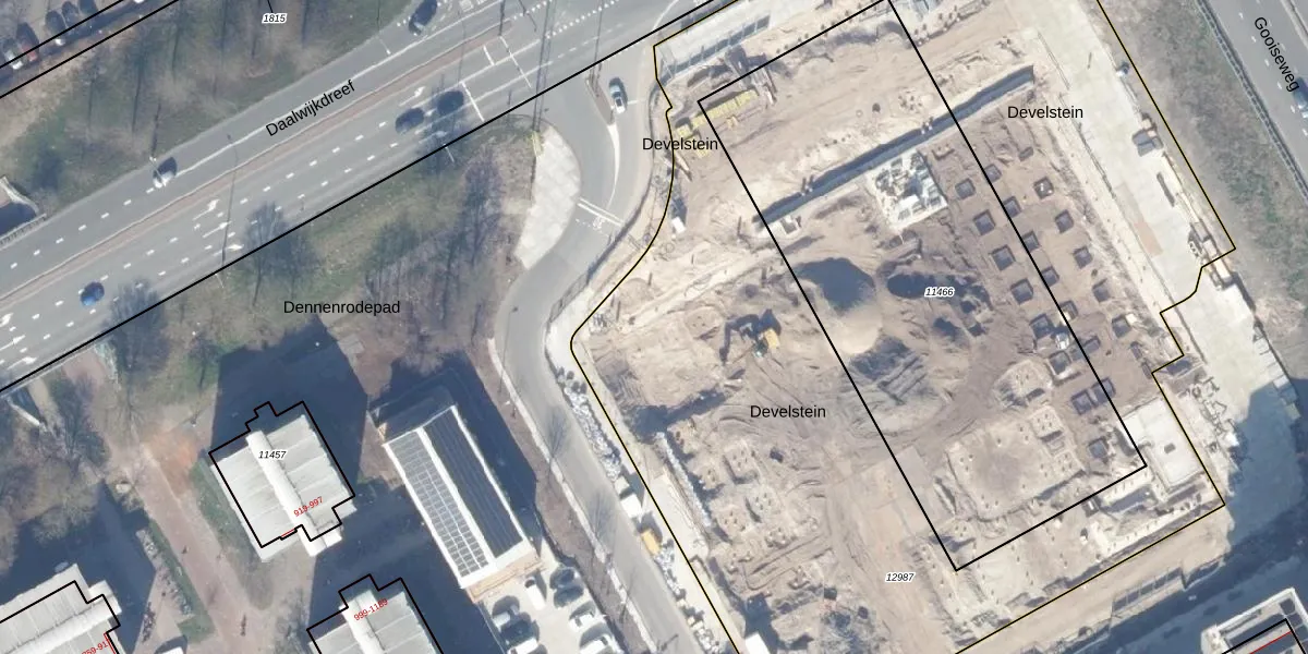 Het perceel waarop Develstein 30-G staat heeft een oppervlakte van 5873 m². Dit is een zeer groot perceel. De perceeloppervlakte wordt geregistreerd door het Kadaster. Gedetailleerde informatie over de maten van dit perceel kunt u vinden in het rapport Kadastrale kaart met maatvoering van Develstein 30-G.