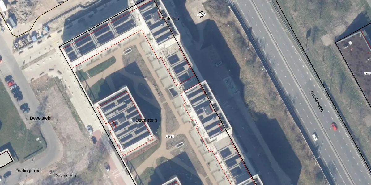 Het perceel waarop het adres ligt is WPK02-L-12413. De afkorting 'WPK02' staat voor kadastrale gemeente Weesperkarspel. De gemiddelde perceeloppervlakte in de kadastrale gemeente Weesperkarspel is 1745,08 m². Dit perceel is met zijn 8100 m² dus groter dan gemiddeld. De grootste perceeloppervlakte in de kadastrale gemeente is 1,04 km². De kleinste oppervlakte bedraagt 0 m². Op het perceel zijn 264 adressen aanwezig. In de Basisregistratie Kadaster (BRK) werden de grenzen van het perceel geregistreerd op 21-12-2023.