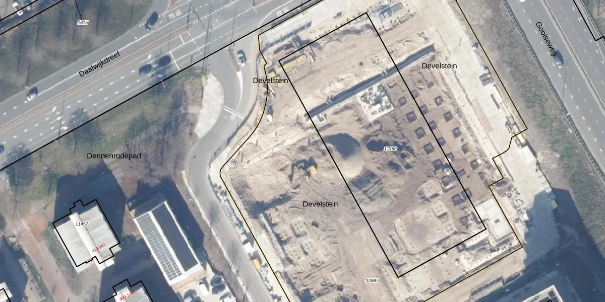 Het perceel waarop Develstein 32-B staat heeft een oppervlakte van 5873 m². Dit is een zeer groot perceel. De perceeloppervlakte wordt geregistreerd door het Kadaster. Gedetailleerde informatie over de maten van dit perceel kunt u vinden in het rapport Kadastrale kaart met maatvoering van Develstein 32-B.
