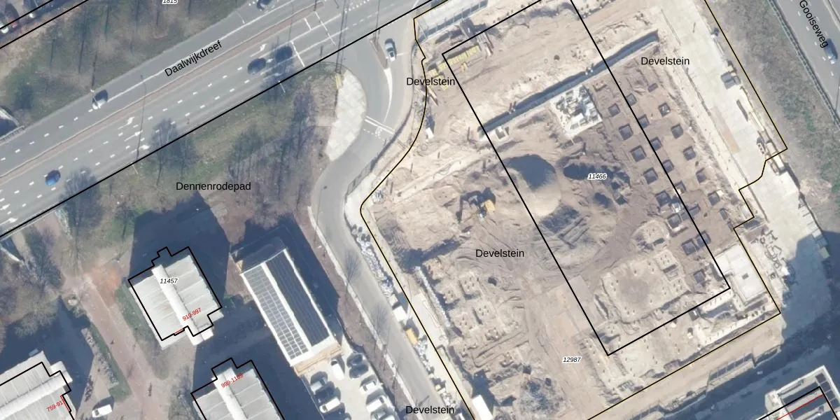 Het perceel waarop Develstein 32-G staat heeft een oppervlakte van 5873 m². Dit is een zeer groot perceel. De perceeloppervlakte wordt geregistreerd door het Kadaster. Gedetailleerde informatie over de maten van dit perceel kunt u vinden in het rapport Kadastrale kaart met maatvoering van Develstein 32-G.